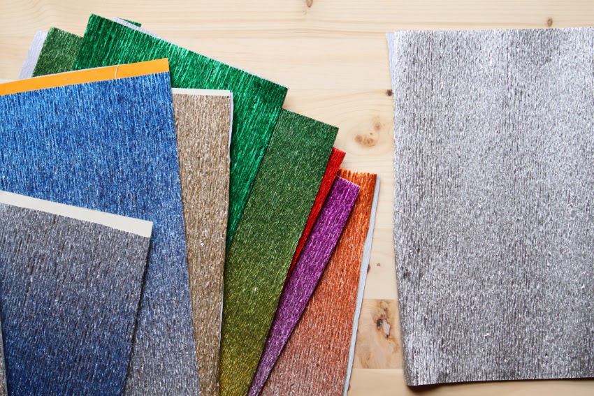 Create as many of these metallic paper/card stock composite sheets as you would like in as many colors as you would like, just be sure to flatten them before beginning to cut them.